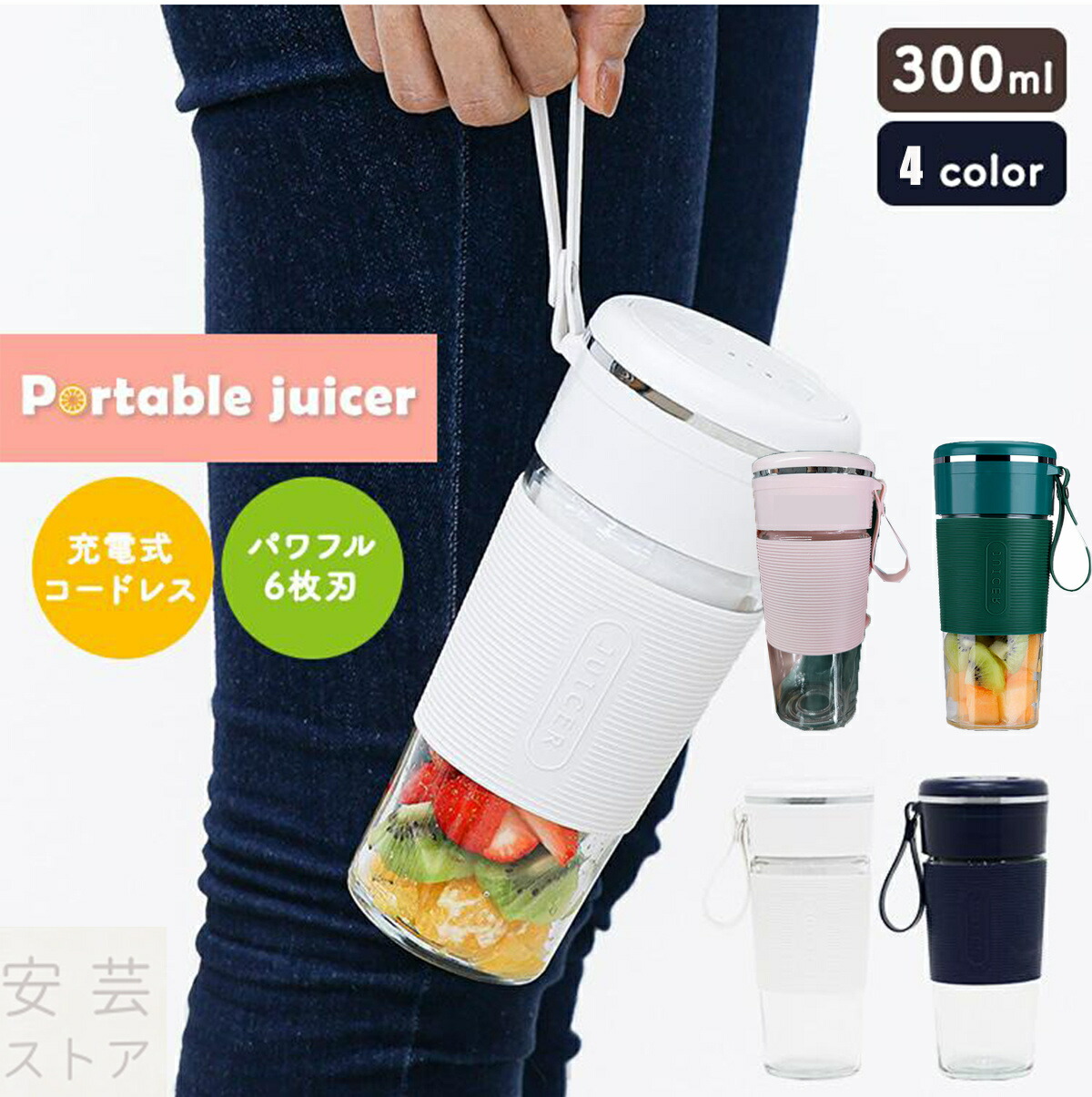 電動ジューサー ミキサー 小型 氷対応 洗いやすい 1人用 持ち運び 携帯式 ボトルミキサー コードレス 充電式ブレンダー スムージー プロテインシェイカー 離乳食