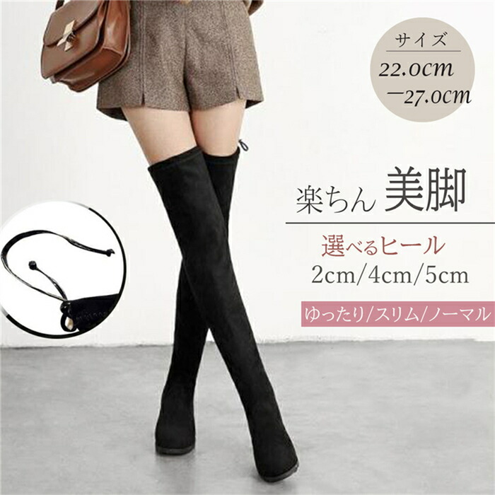 2 4 5cm ニーハイブーツ 美脚 大きいサイズ 27cm対応可 フィット 秋 冬 太ヒール 疲れにくい レディースシューズ ブーツ 太めヒール 秋冬靴 通勤用 女性用 秋冬コ オシャレ