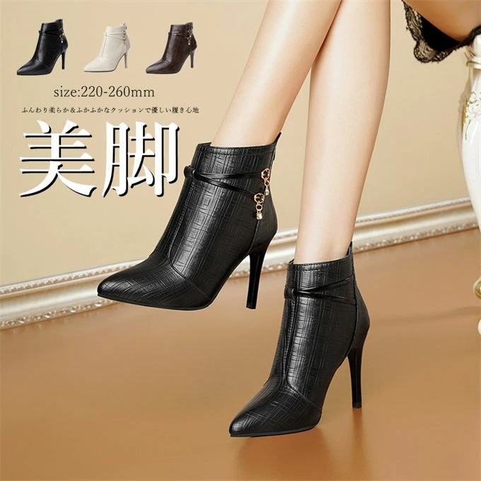 ファスナー付きショートブーツ レディース ポインテッドトゥ ピンヒール スムース 合成皮革 歩きやすい 痛くない カジュアル 婦人靴 シューズ おしゃれ 可愛い 美脚 走れる