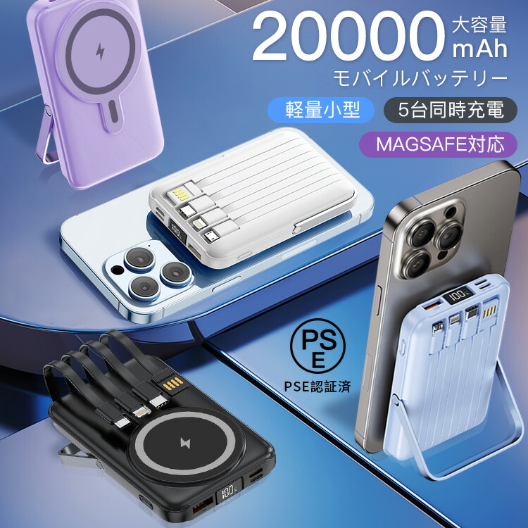 P 高出力 スタンド マグセーフ 5台同時 急速充電 軽量 小型 大容量 magsafe ワイヤレス充電 20000mAh モバイルバッテリー モバ充