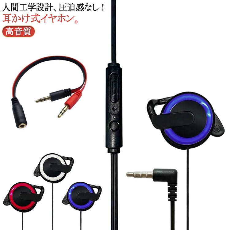 有線ヘッドホン マイク付き 耳かけ式イヤホン ヘッドセット おしゃれ 耳掛け型 イヤホン 耳かけ 落ちない ハンズフリー 黒 有線 3.5mm 長時間 かわいい ラジオ 通話 iphone ヘッド 白