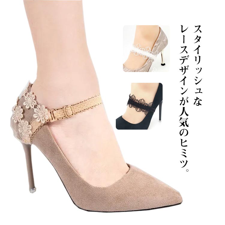 調節可能 ヒールストラップ パンプスベルト シューズバンド ストラップ ベルト メッシュ かかと 刺繡 レース 上品 エレガント パーティー おしゃれ