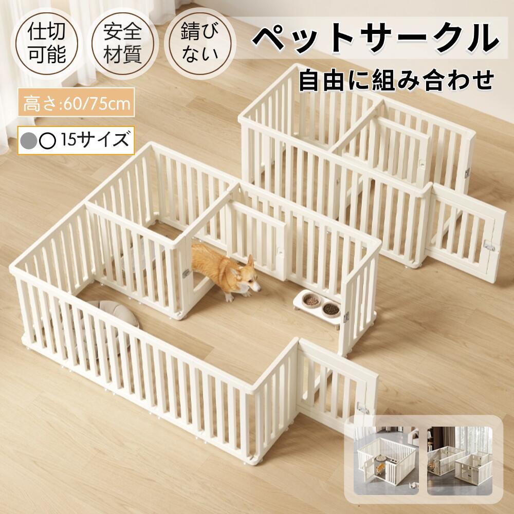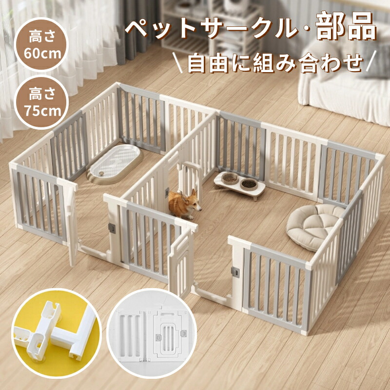 ペットサークル 小 中 大型犬用 広い 屋内 ドア付き 犬 サークル ペットハウス ペットケージ 檻感がない 自由に組み合わせ 犬脱走防止フェンス 75cm 用ゲージ 室内サ 高さ60cm