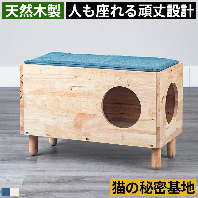人も座れる 頑丈設計 木製 天然木 スツール ベンチ 入口付き 猫小屋 キャットベッド 猫ベッド ペットハウス 大型猫 小型猫 室内用 猫家具 猫用家具 ロースツール サイドテーブル お ベンチ収納