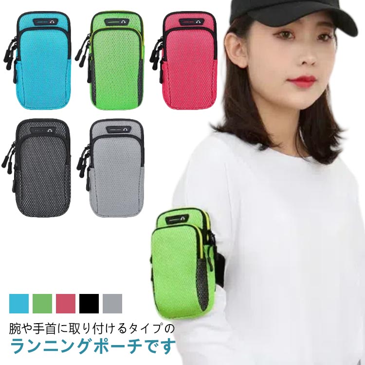 メッシュアームバッグ アームバンド スマホポーチ 腕 手首 アームポーチ スマホホルダー アームホルダー スマホ収納 ケース スポーツ用 収納ポーチ タテ型 防水 ファスナー 携帯 運 マジックテープ