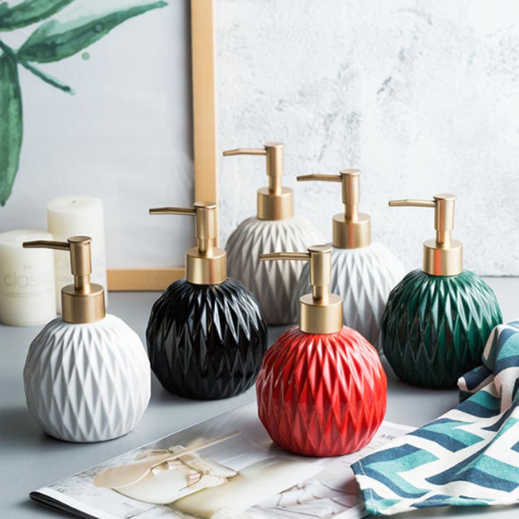 ディスペンサー 雑貨 ソープディスペンサー 北欧風 セラミック ボトル 容量400ml キラキラダイヤ詰め替えボトル ハンドソープ トイレ 洗面用品 バス お風呂