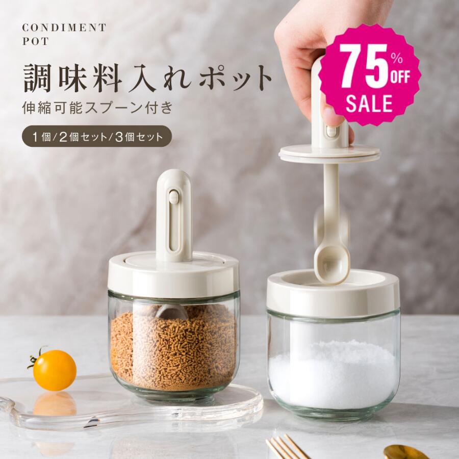 調味料入れ 調味料ポット 塩 砂糖入れ 香辛料瓶 調味料ケース スパイスボトル 耐熱ガラス容器 湿気防止 使いやすい おしゃれ 長さ調整可能スプーン付き