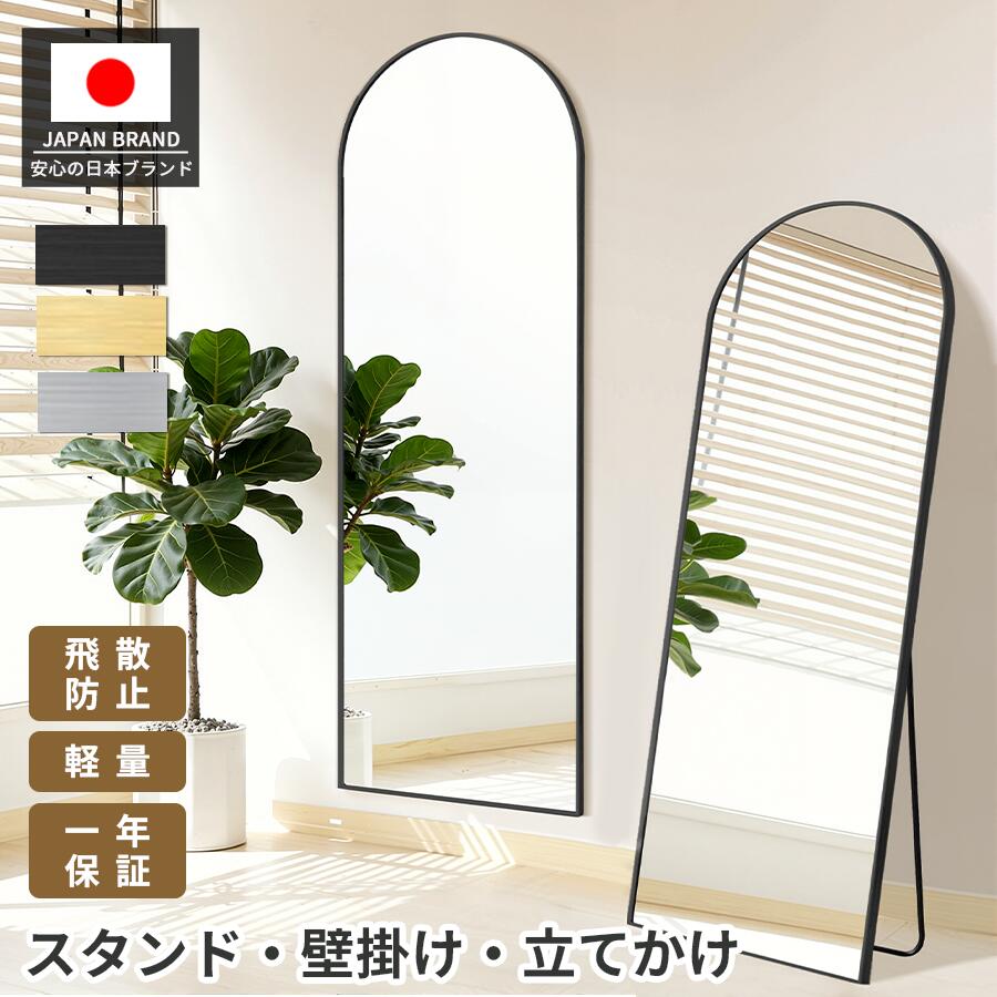 全身鏡 鏡 姿見 アーチミラー スタンドミラー 全身 姿見鏡 アーチ型 おしゃれ 大型 立てかけ 壁掛けミラー かがみ 大きい リビング 賃貸 一人暮らし 新生活 ブラック シルバー ゴール 飛散防止