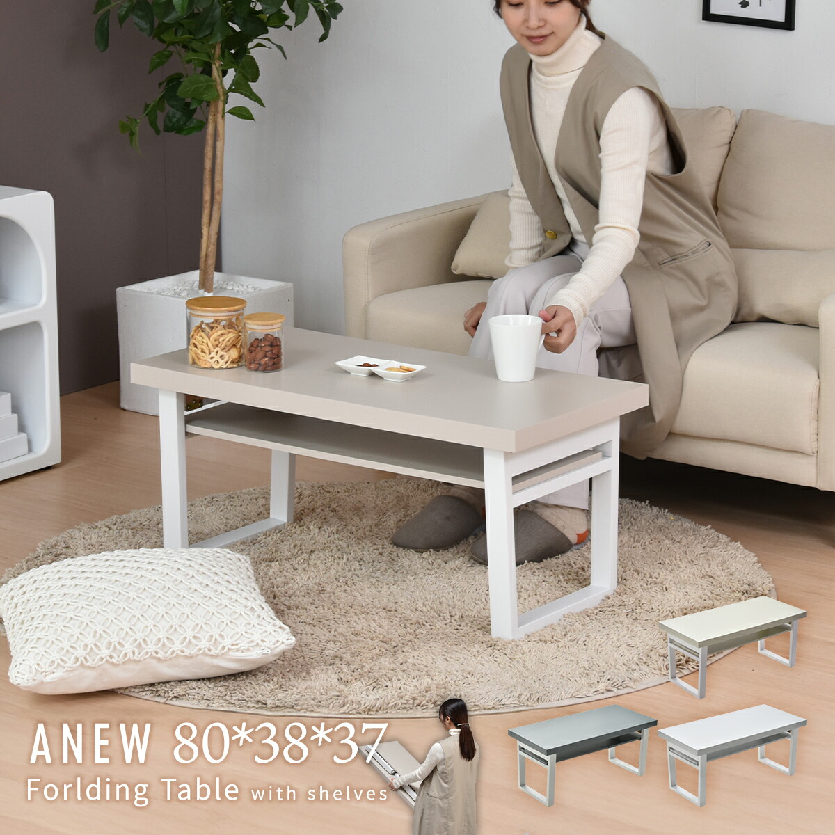 テーブル 折りたたみ おしゃれ 80cm センターテーブル リビングテーブル ローテーブル モダン 北欧 木製 コンパクト シンプル スリム 収納付き 長方形 一人暮らし コーヒーテ 棚付き