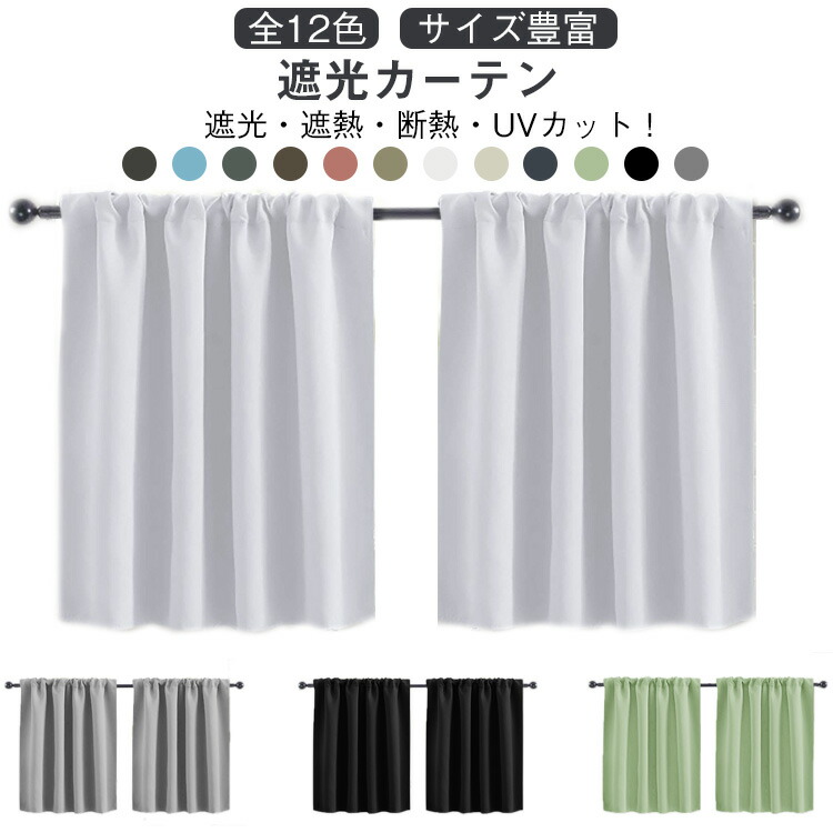 遮熱 遮光カーテン カフェカーテン 目隠し 断熱 1枚入 サイズ豊富 小窓用 12色 無地 洗える UVカット 防寒 保温 省エネ キッチン 1級遮光 厚手 浴室 トレイ 子供 間仕切り