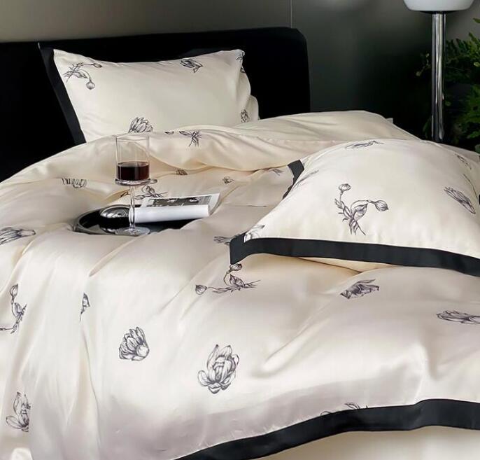 布団カバーセット 4点セット 和風 涼感 ツルツル ダブル クイーン 花柄 柔らかい 肌に優しい 可愛い ボックスシーツ/フラットシーツ 掛け布団カバー