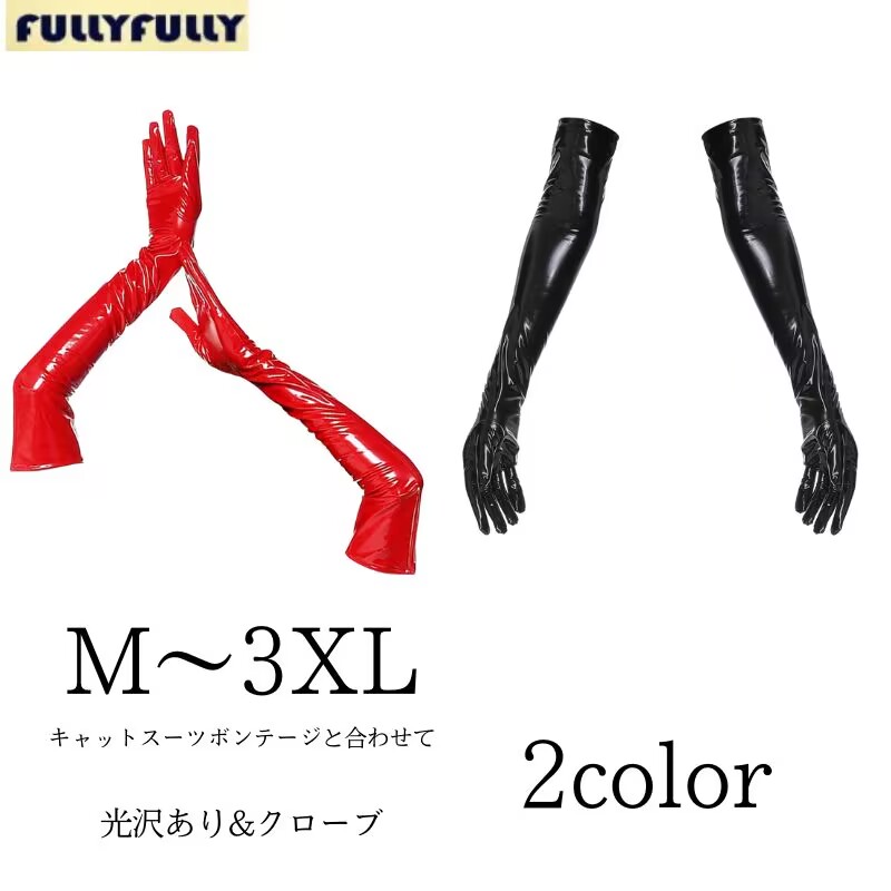 フェイクレザー 光沢 手袋 ストレッチ エナメル パーティー 女王様系 2-3