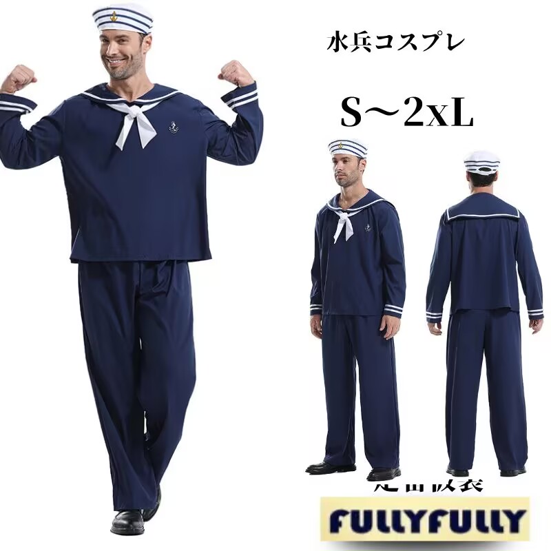 水兵 メンズ コスプレ 大人用 海軍衣装 セット マリン コス コスプレ衣装 ステージ衣装 イベント 余興 男性 セーラー服 水兵さん 仮装 男性用 帽子 面白い お セーラー