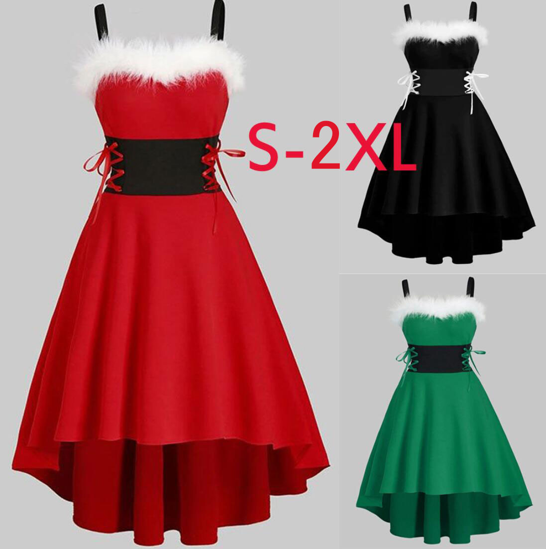 レディースサンタクロース 大人コスチューム クリスマス衣装 ノースリーブワンピース Aライン クリスマスドレス サンタワンピース ダンス衣裳 変身変装サンタさんコスプレ クリスマスパ ロングワンピース