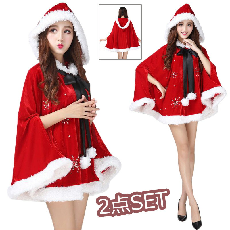 サンタ服 女の子 クリスマス衣装 クリスマス 服 コスプレ 衣装 子供 サンタ コスチューム ベビー キッズ サンタクロース 2点セット 長袖 ケープ付き ワンピース マント 防寒