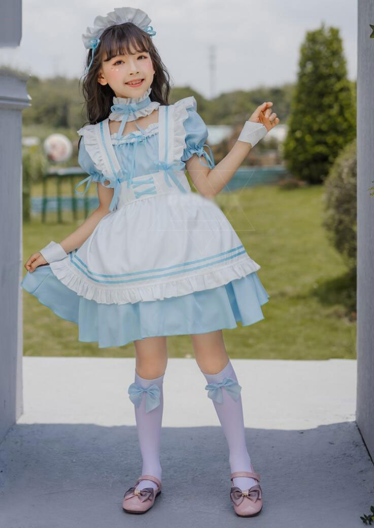 子供メイド服 子どもワンピース 女の子コスチューム キッズ半袖ワンピ メイドコスプレ 定番 可愛いコスチューム コスプレ衣装