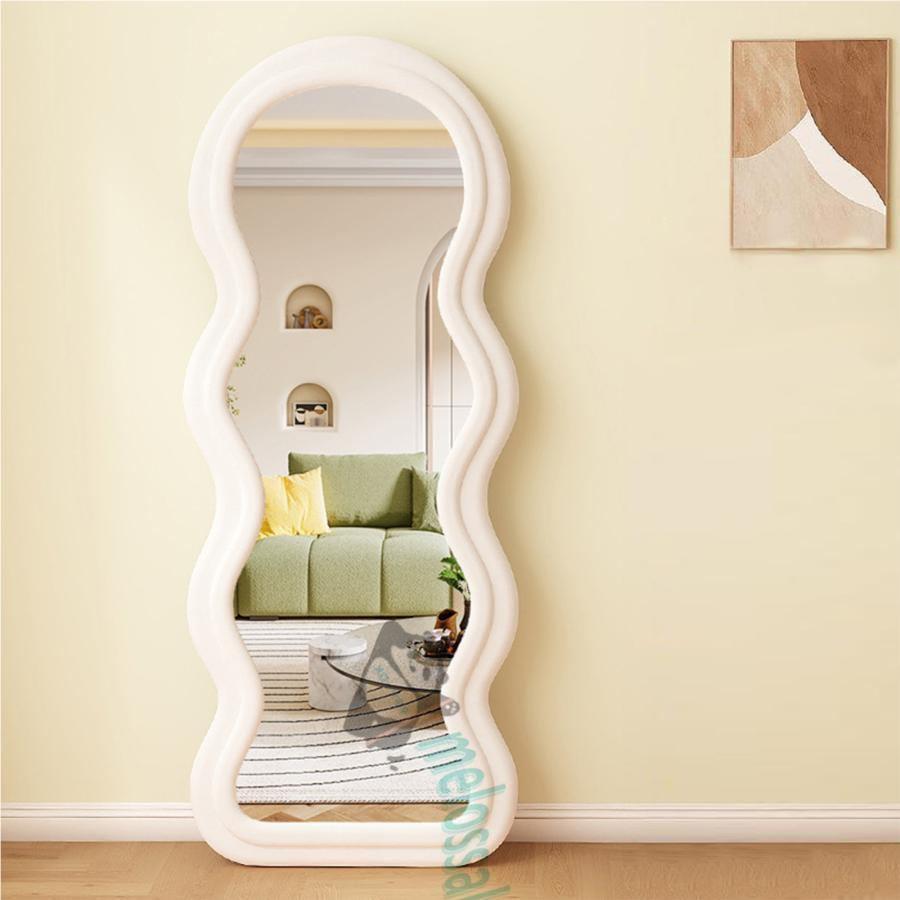 波型 全身鏡 韓国 風 鏡 全身 姫系 姿見 白 ピンク グリーン かわいい 鏡 大きめ 立て掛けミラー 全身カガミ 御洒落16060