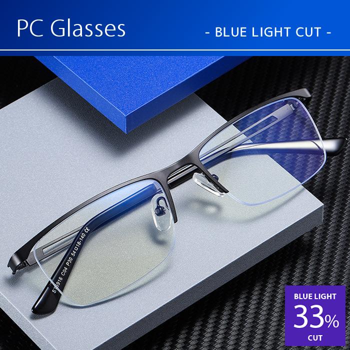 おしゃれ PCメガネ ブルーライトカット メガネ 伊達メガネ メンズ 度なし pcメガネブルーライトカット 検査済 ハーフリム