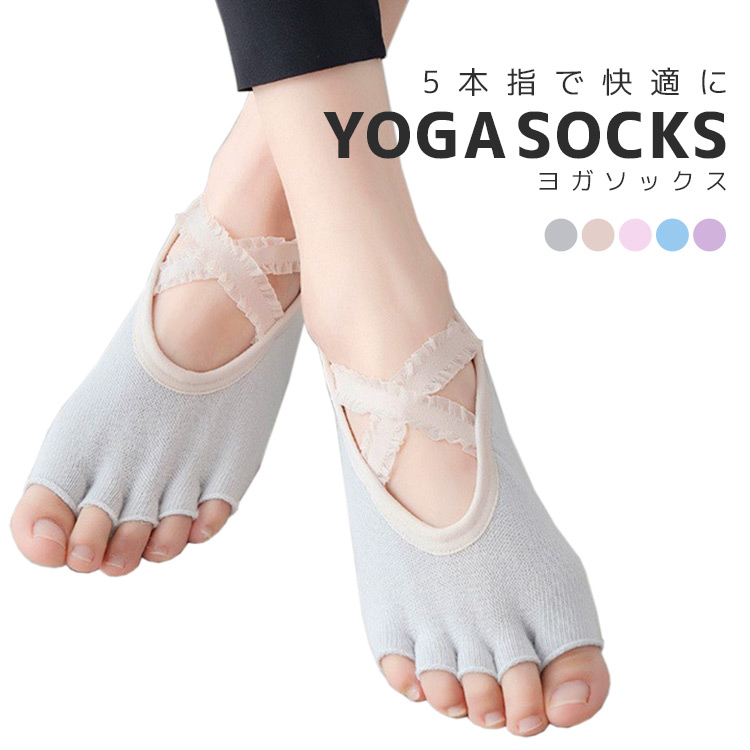 ヨガ ソックス 5本指 滑り止め 靴下 レディース フィンガーレス 指ぬき つま先なし かわいい カバーソックス フリル クロスバンド オールシーズン 運動 スポーツ ジム フィッ トレーニングウェア
