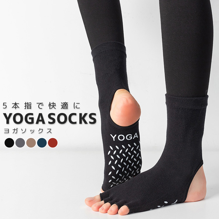 ヨガ ソックス 5本指 滑り止め 靴下 レディース フィンガーレス 指ぬき つま先なし 足首 かかと あり オールシーズン 黒 運動 トレーニングウェア スポーツ フィットネス エクササイズ ス ジム
