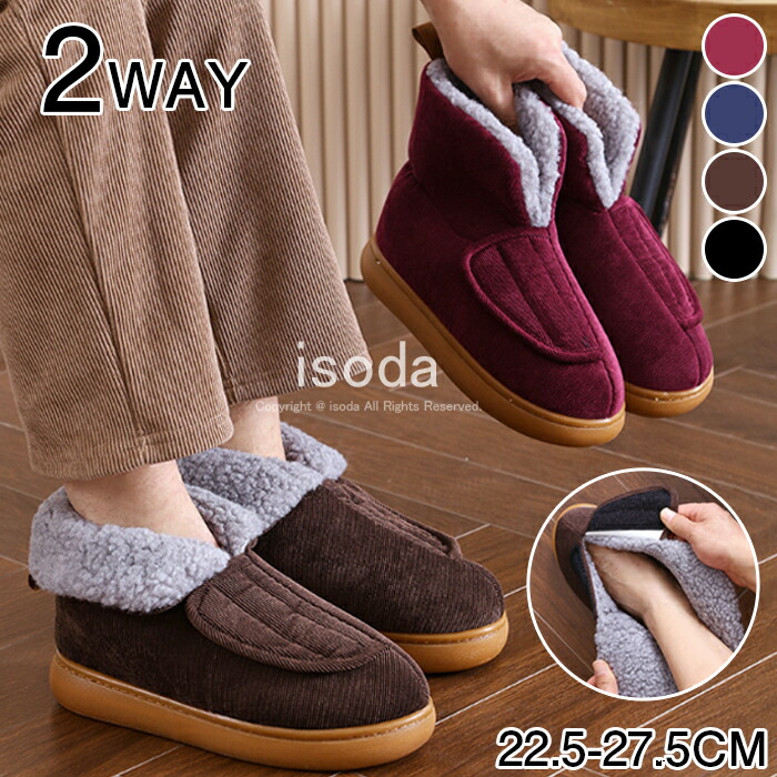 ルームシューズ レディース スリッパ メンズ ムートンブーツ 冬 介護用シューズ 冬靴 防寒靴 リハビリ 屋外 面ファスナー コンフォートシューズ ハイカット 裏起毛 シューズ ミドル丈 もこも 厚底