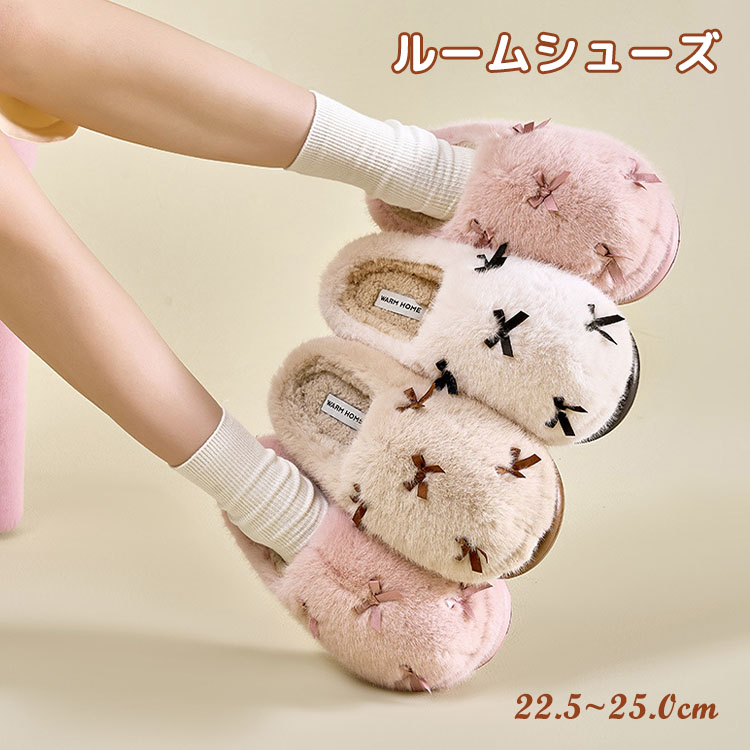 スリッパ リボン飾り 可愛い ルームシューズ おしゃれ カジュアル レディース メンズ 室内履き クッション性 冬用スリッパ カップル ルームシューズ