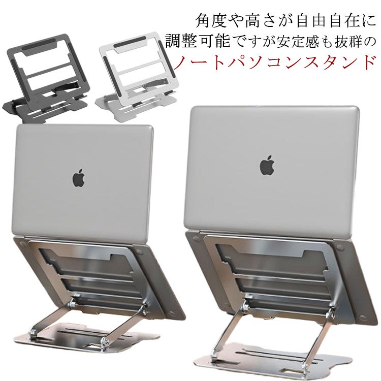 ノートパソコンスタンド PCスタンド 折りたたみ 持ち運び ノートパソコン スタンド 滑り止め 軽量 姿勢改善 パソコンスタンド 高級 ホルダー 高さ 角度調整可能 アルミ