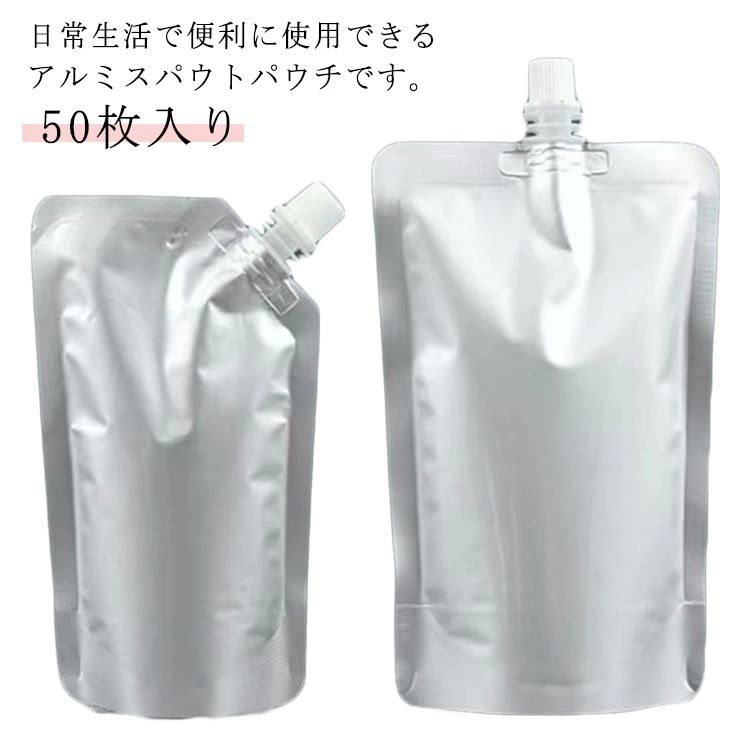 50枚入り アルミ製 スタンドパウチ 500ml 詰め替え容器 アルミパウチ スパウトパウチ 自立式 袋 ふた付き 詰め替え キャップ付き