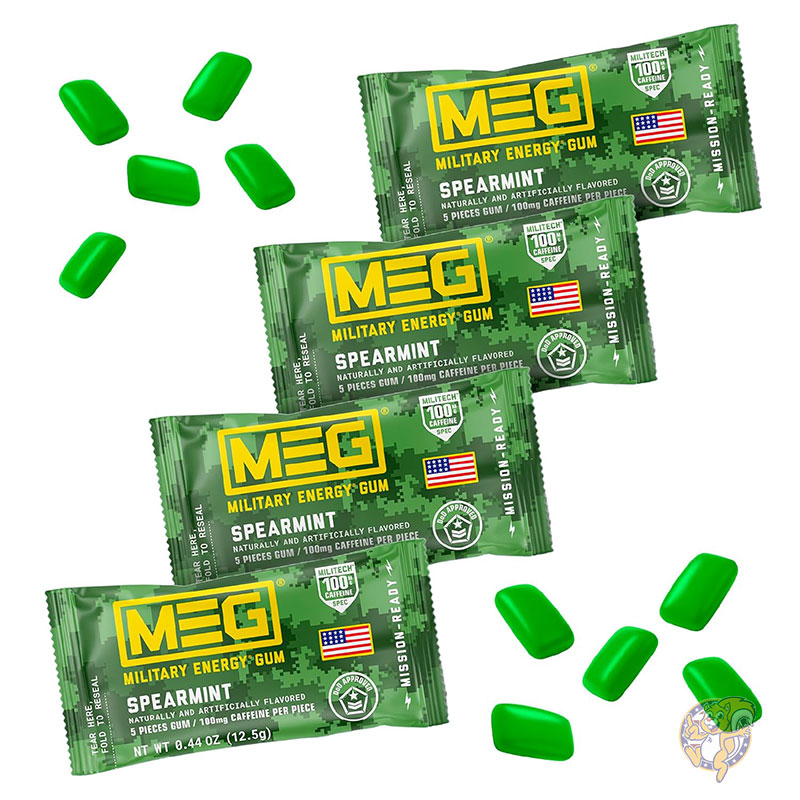 MEG ミリタリーエナジーガム 1個あたりカフェイン100mg エネルギーアップ 身体能力向上 スペアミント 20個入り ガム 4パック