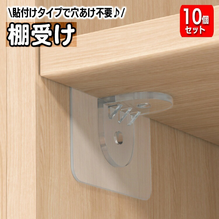 棚受けフック 10個セット 粘着タイプ L型棚受け ダボ 棚ダボ 収納家具用部品 クリア 透明 貼り付け 穴あけ不要 壁掛けフック 日用品雑貨 簡単 便利 棚板追加