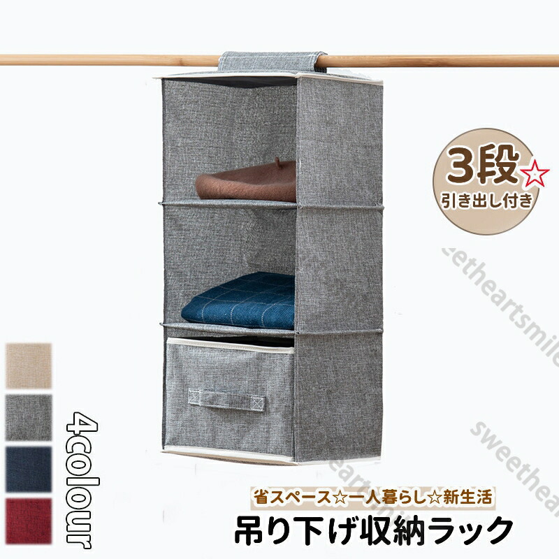 吊り下げ収納 ラック 収納バッグ ボックス クローゼット 引き出し付き 3段 衣類 小物収納 収納ラック 洋服 吊り下げラック ワードローブ 洋服収納 衣服 鞄 キャップ 小 収納カバン