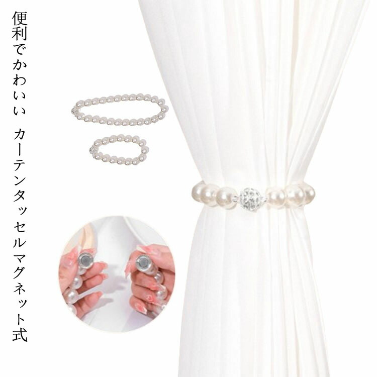 2個セット カーテンタッセル マグネット カーテンホルダー ふさかけ おしゃれ カーテン留め パール 磁石 カーテン留め具 ホルダー マグネット式 ドレープ シンプル インテリア 雑貨 留め
