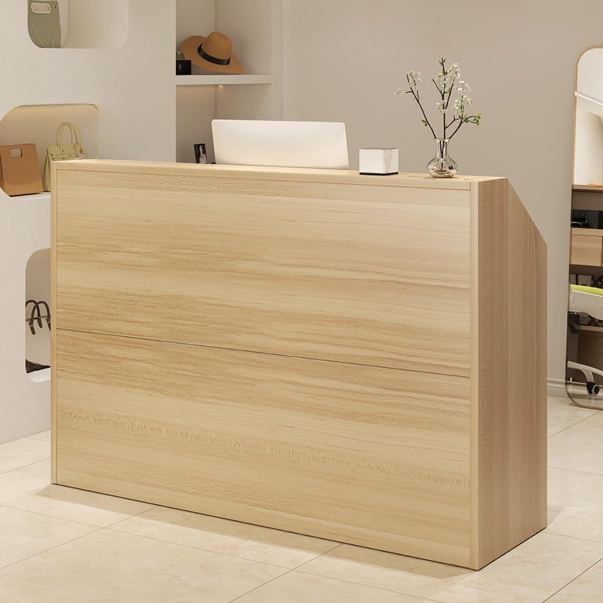 受付カウンター 木製カウンターテーブル 企業フロントデスク 衣料品店のレジ 小規模店舗のレジ モダン レジカウンター 鍵付き 組み立てが簡単 理容室 アパレルショップ モダンなデザインの受付デ 美容室