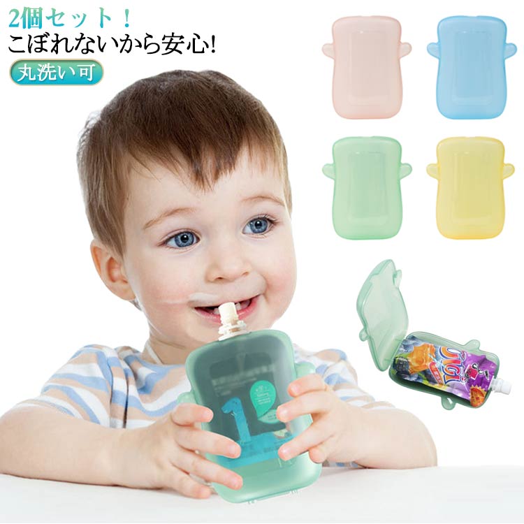 ベビー 2個組 ボトルホルダー こぼれない イエロー ブルー ドリンクホルダー ジュレケース ドリンクケース ジュレホルダー 収納 1人で飲める グリーン 飲み物 水分補給 カップホル ピンク