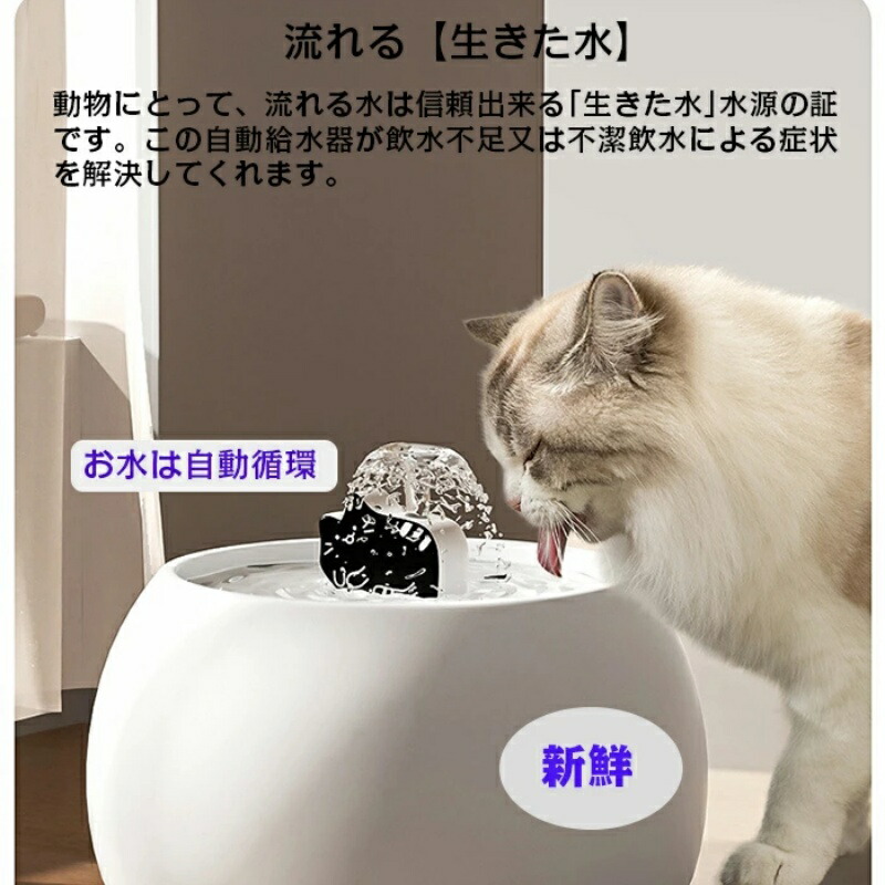自動給水器 猫&犬用 毎日きれいな水飲み器 猫犬の健康はおいしい軟水から!超静かで循環浄水型自動給水器 クリスマス ギフト 自動補水 お留守番対応 省エネ ネコ給水器 猫の水飲み器