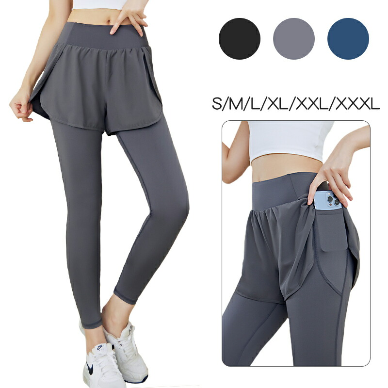 送料無料 ヨガパンツ ショートパンツ 一体型 レギンス レディース 9分丈 大きいサイズ 体型カバー/小尻効果/動きやすい/太もも~足首細見え/おしゃれ/美シルエット/美尻&美脚/3色