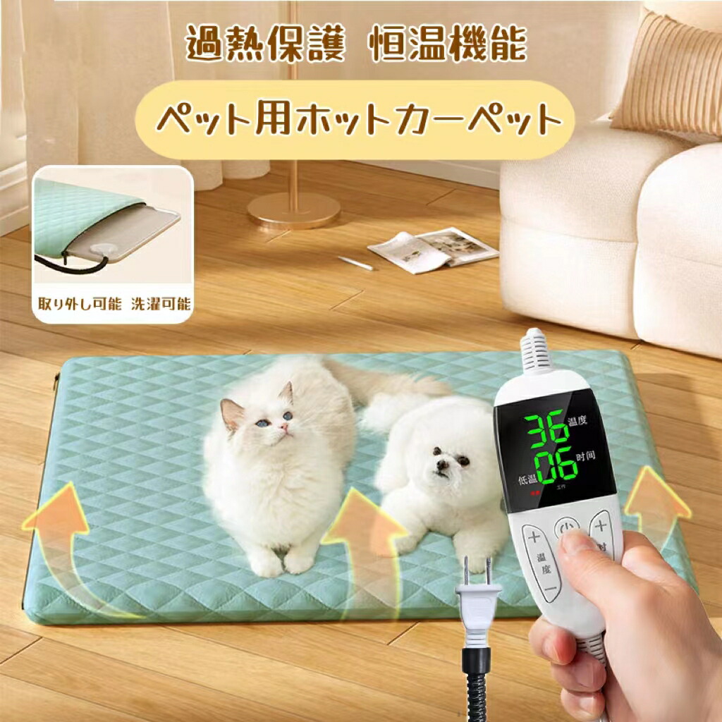 ペットヒーター ペット用ホットカーペット ペットカーペット ヒーターマット 30~60°C温度調節可能 厚手 12段タイマー機能 恒温機能 猫 小動物用 ヒーター 噛み付き防止 犬