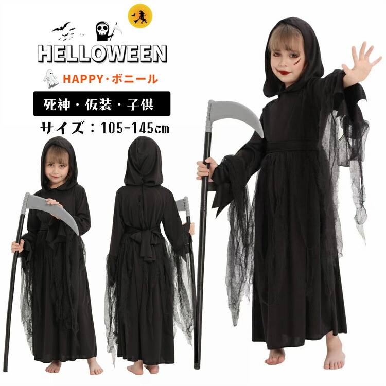 ハロウィン 衣装 子供 死神 キッズ 子供用 仮装 変装 余興 演劇 ステージ服 舞台服 文化祭 学園祭 コスチューム 黒 女の子 男の子 コスプレ コスプレ衣装 イベント パーティー 新年会