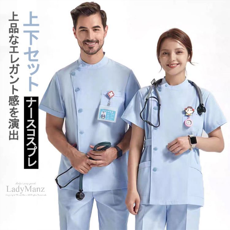 10%off中 ハロウィン コスプレ ナース ナース服 医者 シンプル 柔らかい 長袖 半袖 フルセット スクラブ 上下セット セットアップ 白衣 制服 看護師 介護士 快適 仮装 コスチュー 無地