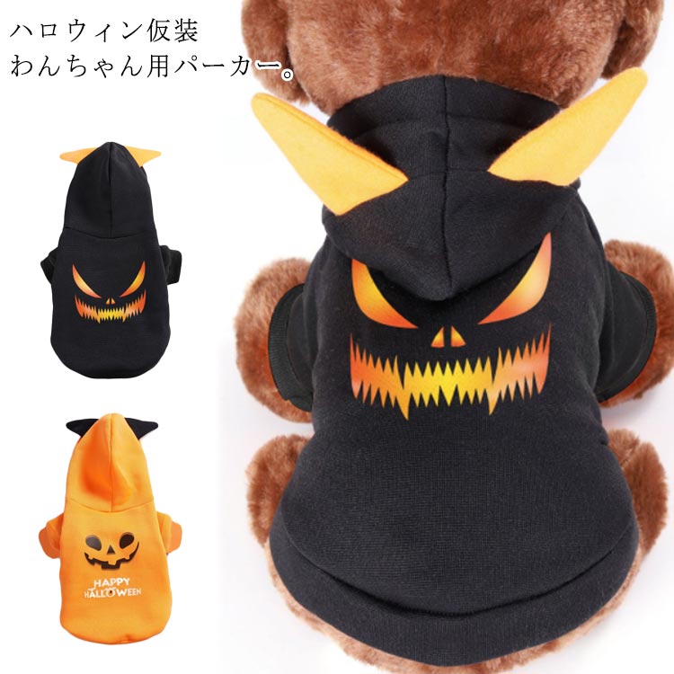 ハロウィンパーカー 犬服 パーカー フード付き ハロウィン 犬の服 ペット カボチャに変身 ペットウェア 秋 冬 全2色 パーティー