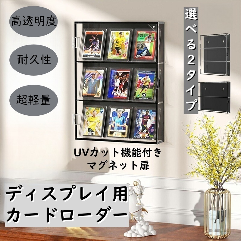 カードローダー トレカ ディスプレイ 透明性が高い 壁掛け可能 マグネット扉 カット 簡単設置 ポケカ 遊戯王 ワンピ カードディスプレイ