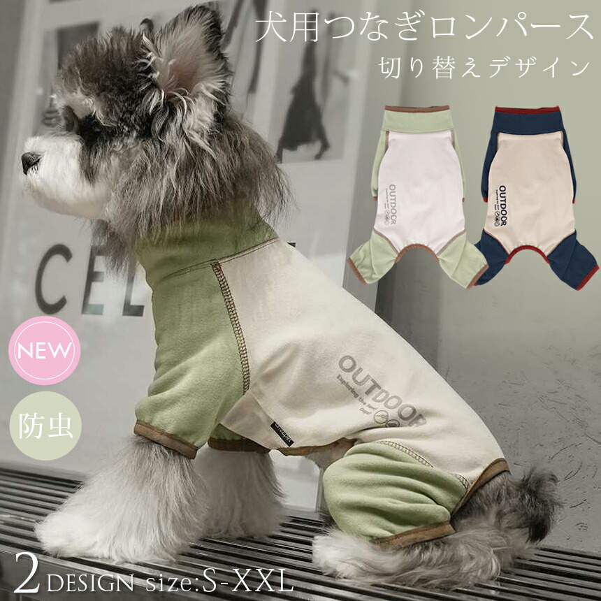ドッグウェア 犬 犬服 ペット ロンパース カバーオール つなぎ オールインワン 部屋着 インナー 防汚 虫よけ 抜け毛対策 洗える 小型犬 中型犬 おしゃれ かわいい コート お出かけ 春 アウター