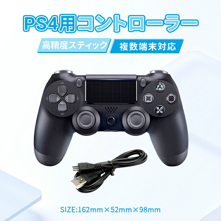 PS4用 コントローラー プレステ4コント 有線 ローラー ジャイロセンサー 連射機能 二重振動 イヤホンジャック タッチパット 搭載 高耐久ボタン PS4 PC ブラック プレステ4