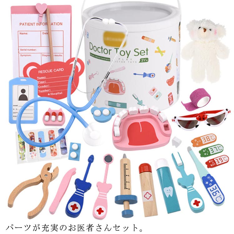 歯医者 お医者さんごっこ ごっこ遊び 知育玩具 木製おもちゃ おままごと 木のおもちゃ 子供用 歯科 おもちゃ お医者さんセット 誕生日プレゼント 出産祝い 30点セット 収納ケース付き