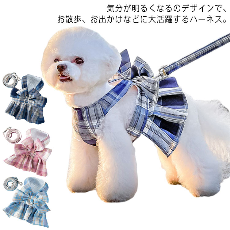 犬 胴輪 ドッグウェア リード 夏服 猫 服 かわいい おしゃれ 犬の服 ハーネス付き 春 きれいめ ドッグ 女の子 ワンピース リボン チェック ウェアハーネス ドレス
