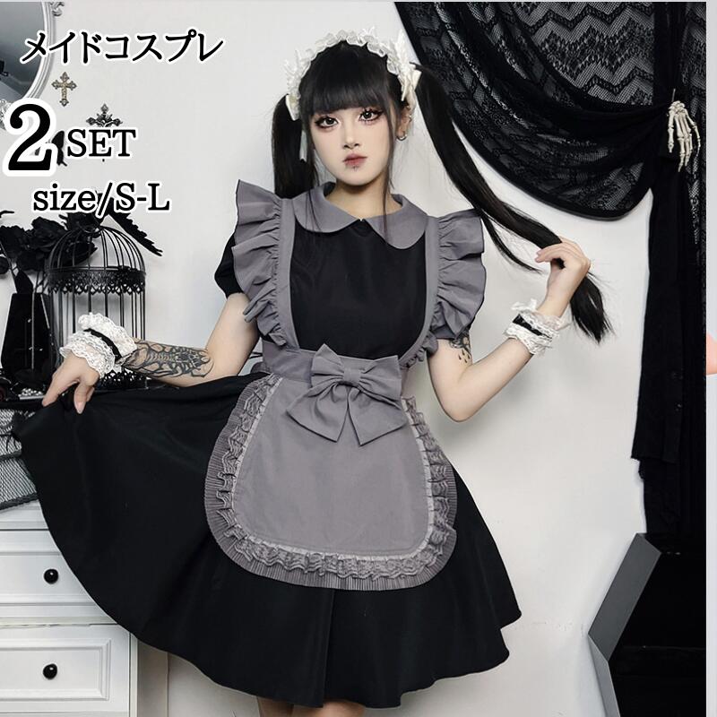 ロリータ ハロウィン メイド服 ミニ 可愛い ブラック 大人用 ミニ丈 イベント衣装 定番8 -17