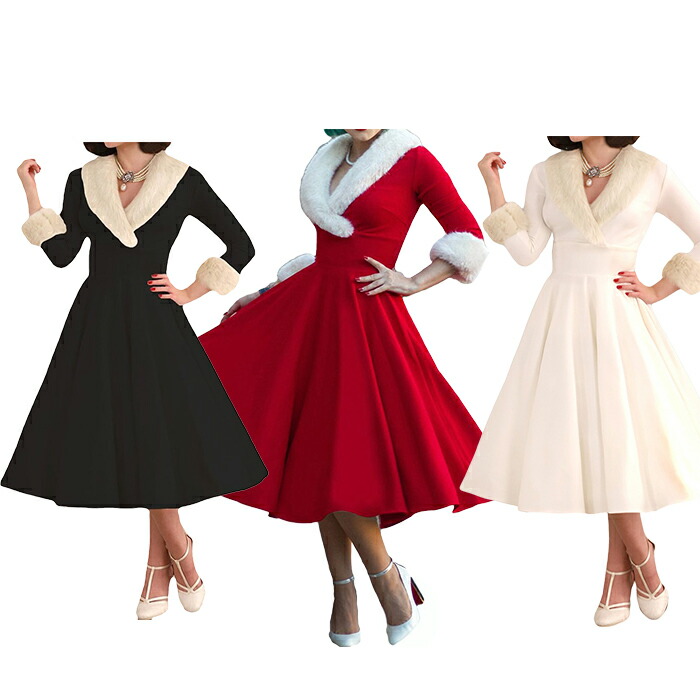 クリスマス ワンピース サンタクロース レディース 衣装 Vネック フレアスカート 仮装 切り替え 重ね着 ふわふわ Aライン サンタ服 パーティー ハイウエスト ロング 長袖 コスチューム もこもこ
