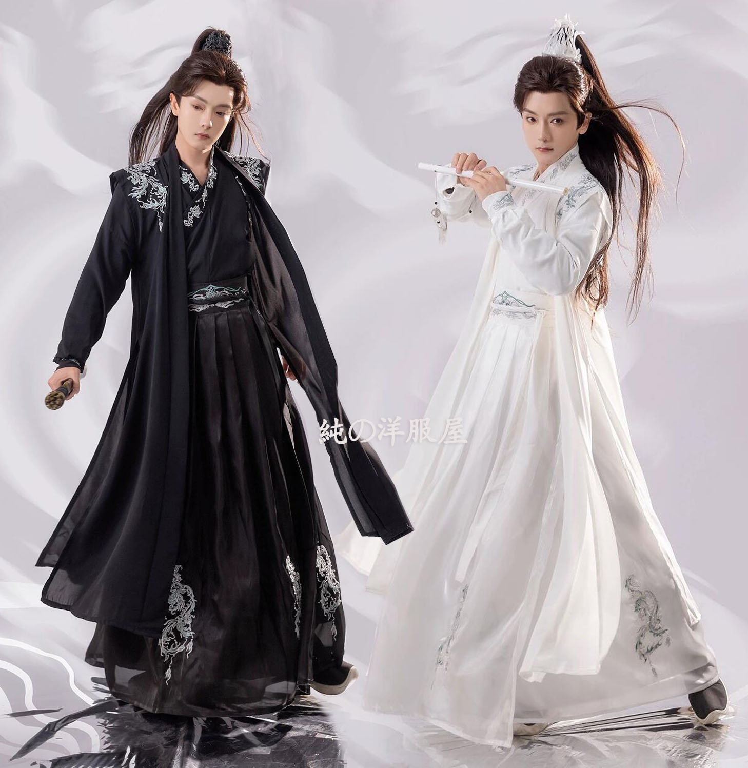 大人 漢服 中華衣裳 メンズ レディース 男女兼用 漢服3点セット 5点セット 黒 白 羽織付き 龍刺しゅう おしゃれ 交差襟 飄逸 チャイナ服 カンフー 武術 中国古代服装 中華古代時代劇 変 侠客