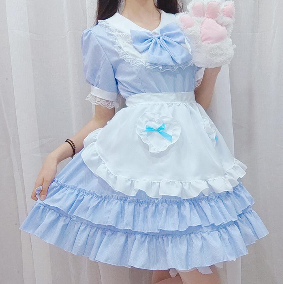 ロリータワンピース メイド服 フィッシュテールドレス コスプレワンピース エプロン 可愛い 半袖ワンピース リボン 44点セットアップ