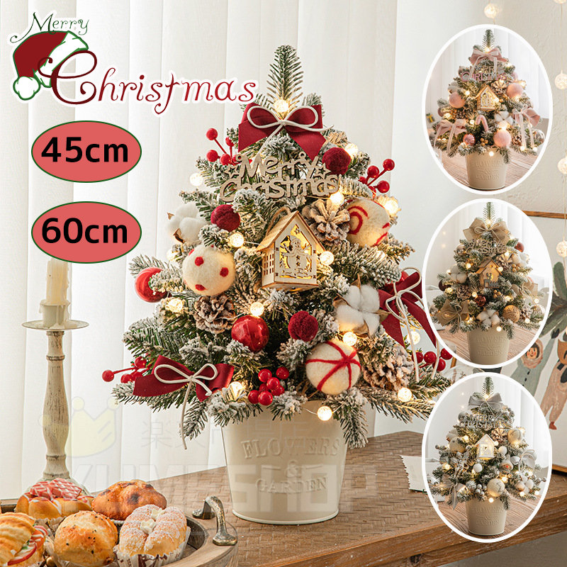 クリスマスツリー 卓上45cm 60cm おしゃれ 北欧 ライト ミニツリー 小さめ クリスマス飾り キラキラ 電池式 オーナメント 雰囲気満々 クリスマスプレゼント 暖かい 部屋 商店 玄関 飾り